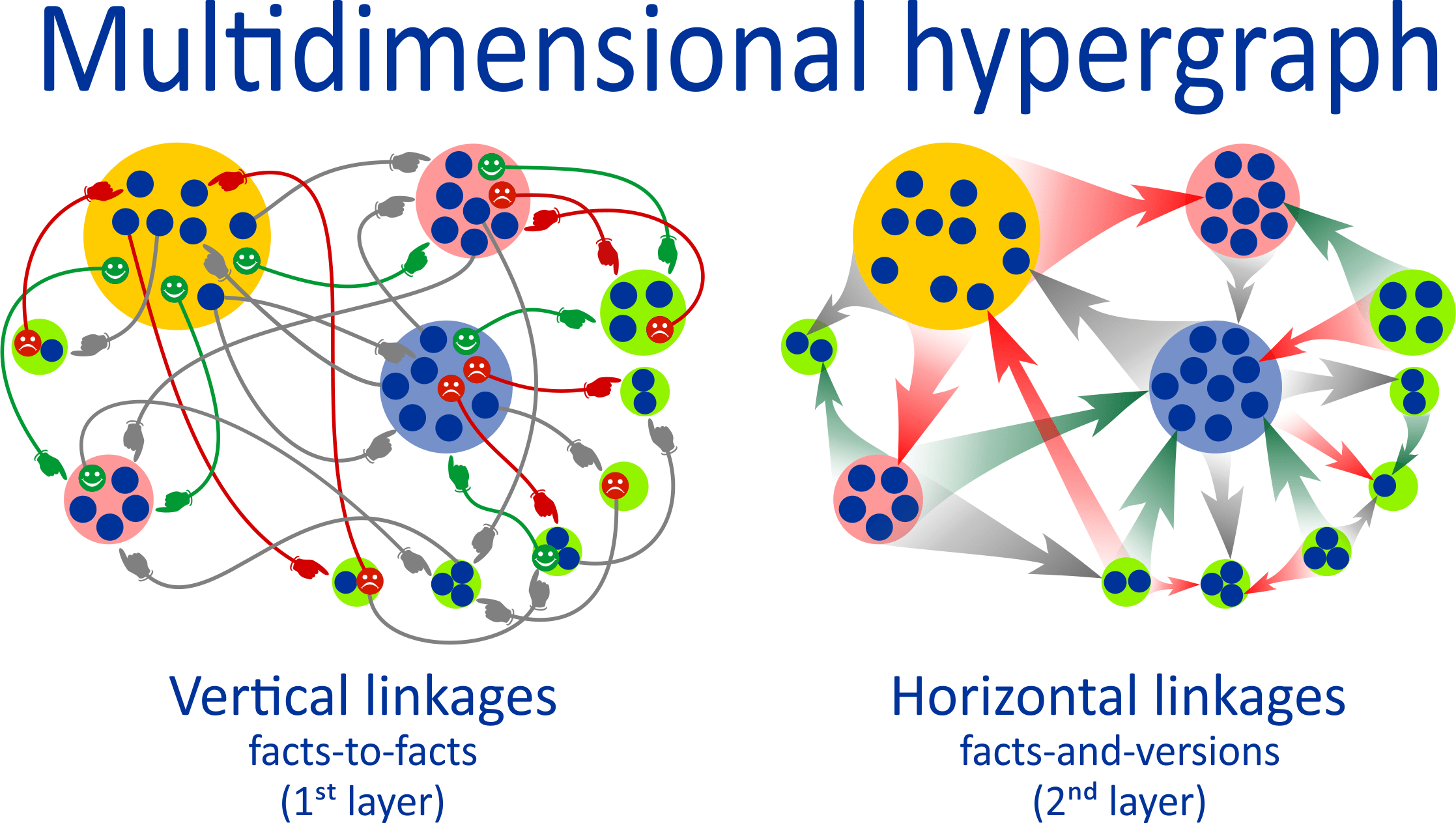 In the global hypergraph, any information is an argument of something one and a counterargument of something else. Different versions compete with each other in terms of the value of the flow of meaning, and the most reliable versions become arguments in the chain of events for facts of higher or lower level, which loops the chain of mutual interaction of arguments and counterarguments and creates a global hypergraph of knowledge, in which the greatest flow of meaning flows through stable chains of consistent scientific knowledge that best meet the principle of falsifiability and Popper's criterion.