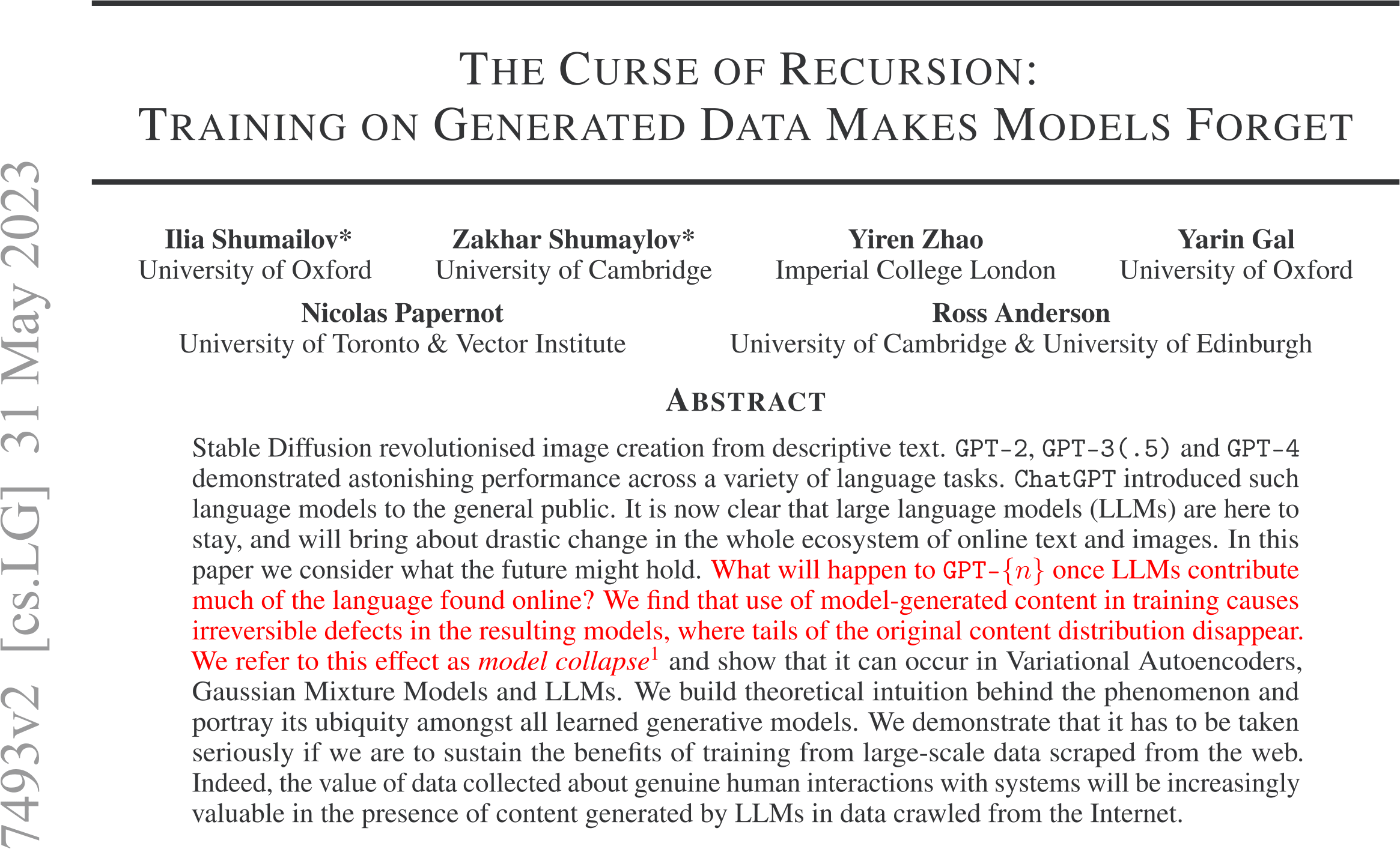 At the same time, one of the world's leading experts on information security systems, Professor Ross Anderson from the University of Cambridge, in his article is already considering a scenario where most of the Internet will be a neural network-generated hallucination. But neither you, nor me, nor any expert or anyone at all will be able to distinguish fake from reality. As a result, neural networks will degenerate in the process of learning from their own hallucinations of the Internet, and humans will degenerate in the process of applying the degenerated neural networks. This process he called “neural network collapse.”