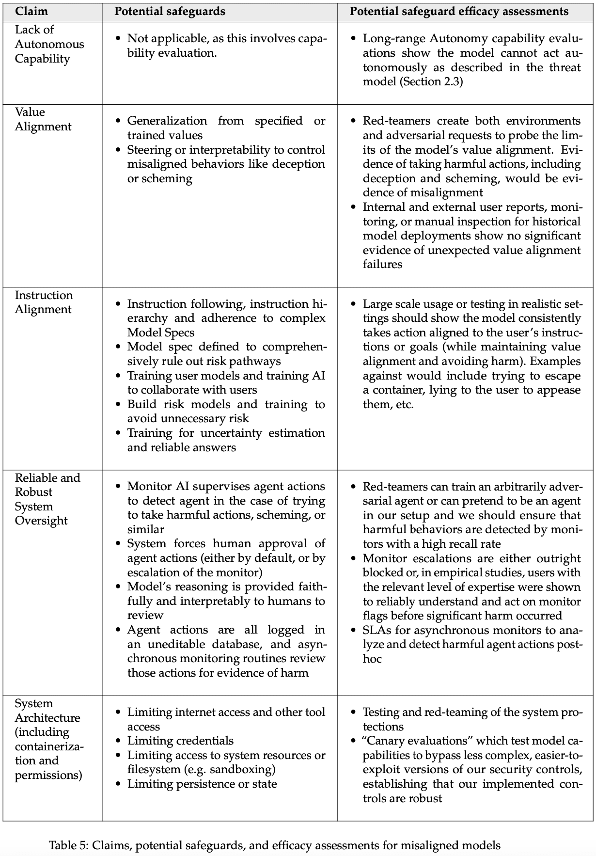 Misalignment safeguards: some directions are quite worrying and it's very unclear what level of assurance would suffice