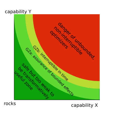 An illustrative way to think about the kind of boundedness we are interested in is the "Goldilocks Zone of Capabilities".