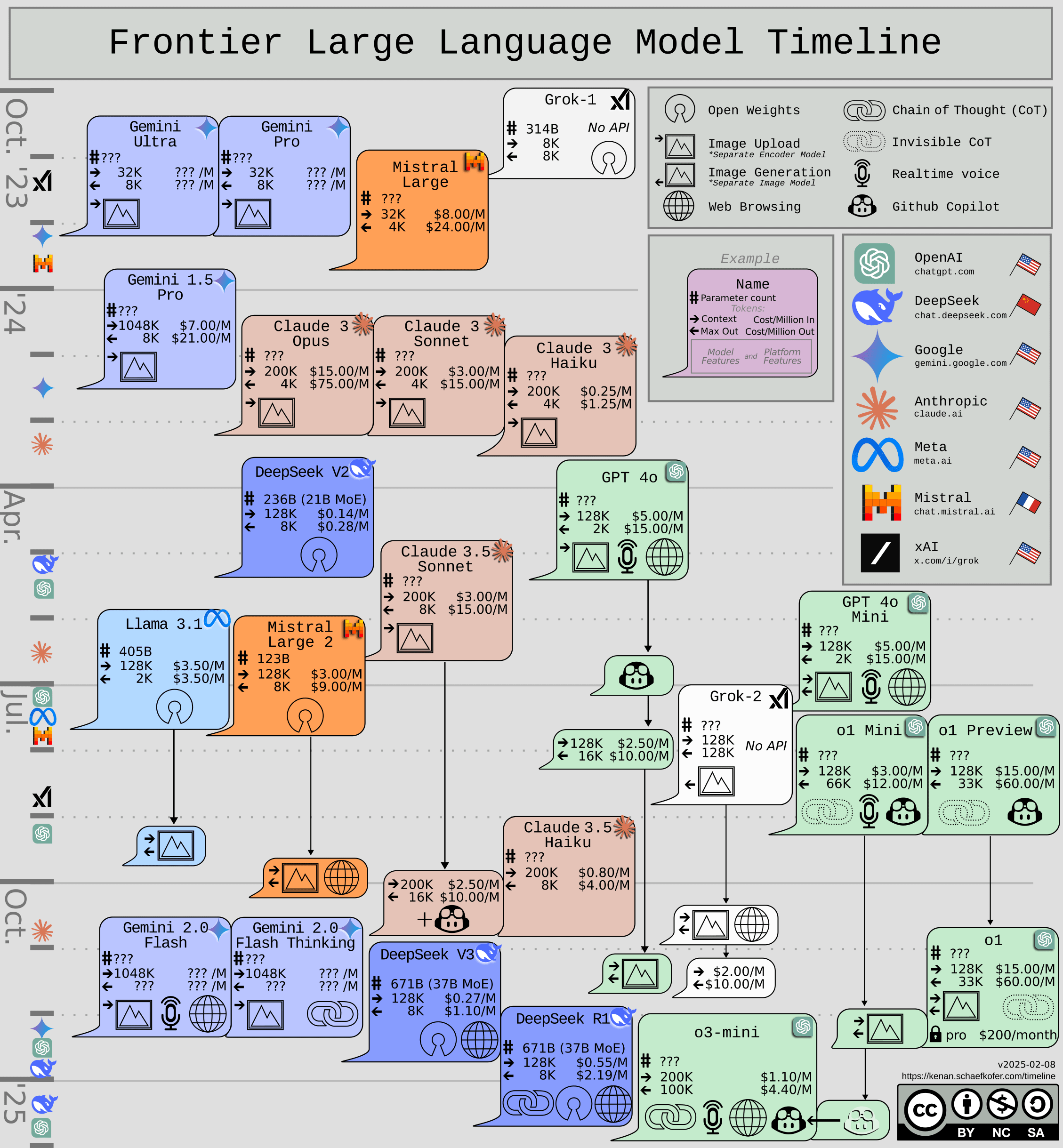 Hopefully this can be a helpful visual reference for the development and features of frontier large language models in the last year-ish. We are always open to feedback on how the reference could be improved.