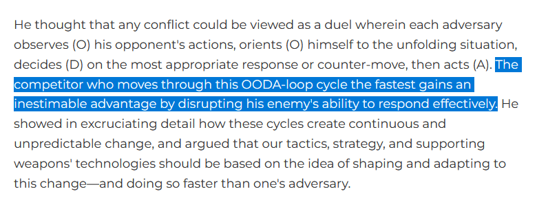 An idea that the US military has been keen to since at least the 1970's is that speed is critical to victory. This concept desperately needs to be applied to cyber security.