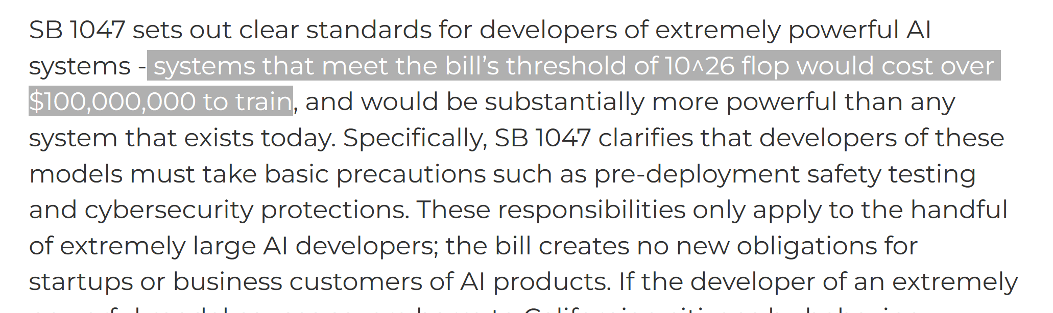 That's the whole point of the bill! It's not trying to address present harms, it's trying to address future harms, which are the important ones. Suggesting that you instead address present harms is like responding to a bill that is trying to price in environmental externalities by saying "but wouldn't it be better if you instead spent more money on education?", which like, IDK, you can think education is more important than climate change, but your suggestion has basically nothing to do with the aims of the original bill.