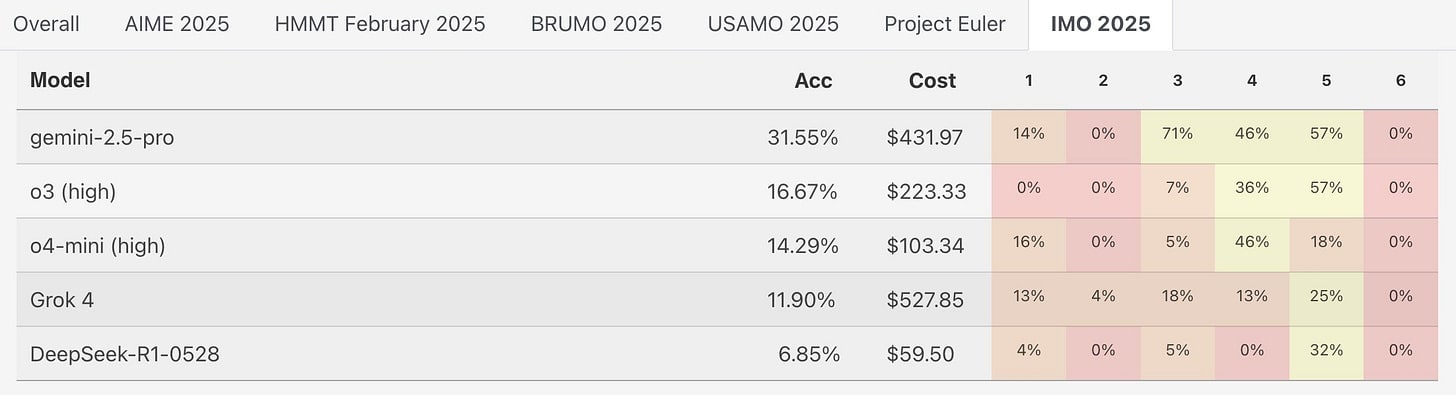 The IMO 2025 results quickly came in for released models.