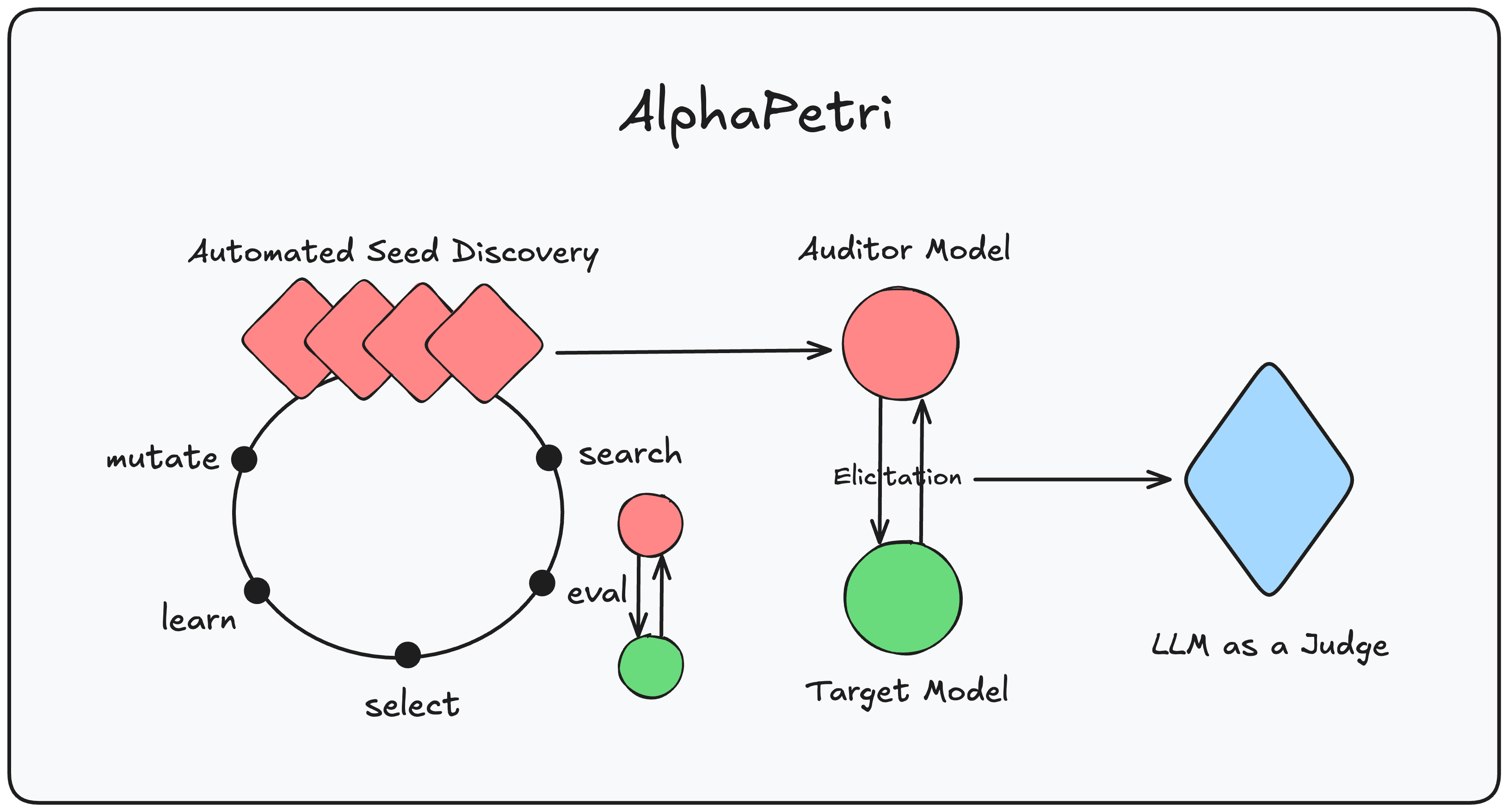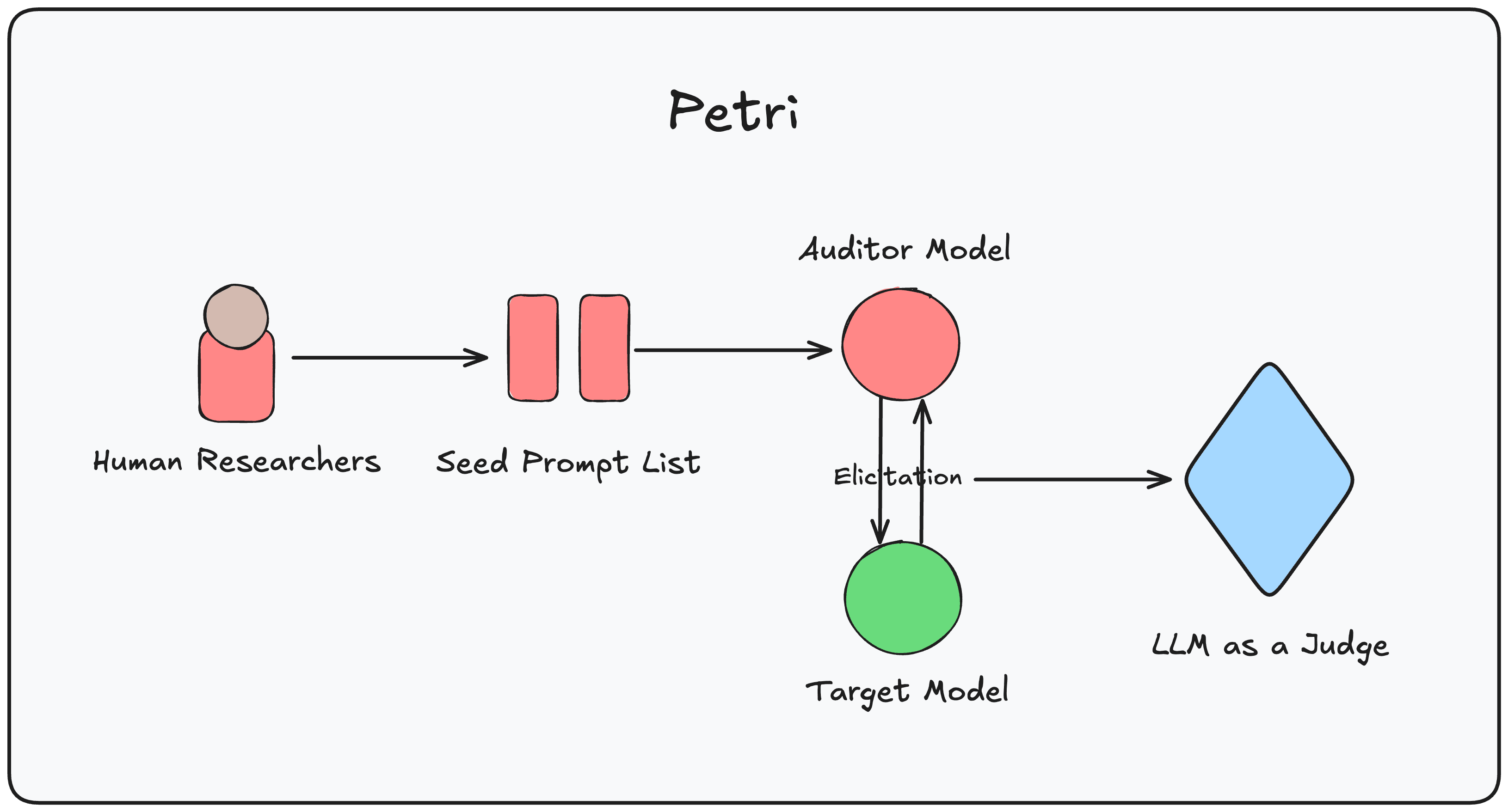 Petri from Anthropic is an open-source tool that makes automated auditing capabilities available to the broader research community. Petri enables researchers to test hypotheses about model behaviour in minutes, using AI agents to explore target models across realistic multi-turn scenarios. However, Petri still requires humans in the loop - researchers need to come up with hand-crafted seed instructions that will then be used by Petri to build environments, scenarios, and run audits. This is a bottleneck. Hand-authored seeds are expensive, reflect the authors' priors, and limit coverage and novelty, especially as models and defences change quickly. Learn more about Petri here.