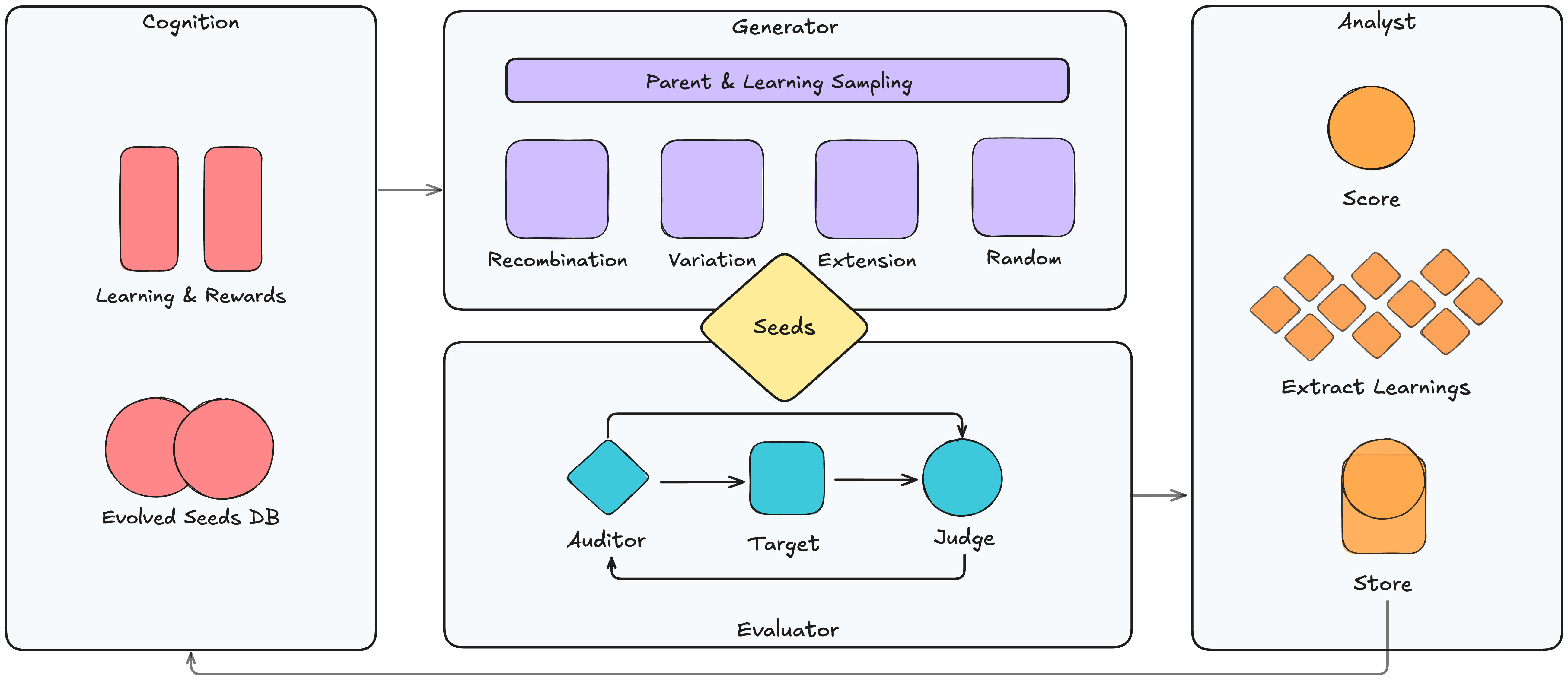 [Problem] Petri semi-automates the AI Safety Testing stack but it still relies on human-generated seed prompts for it it be effective. This presents a bottleneck for scale along with coverage, diversity, and cost.
