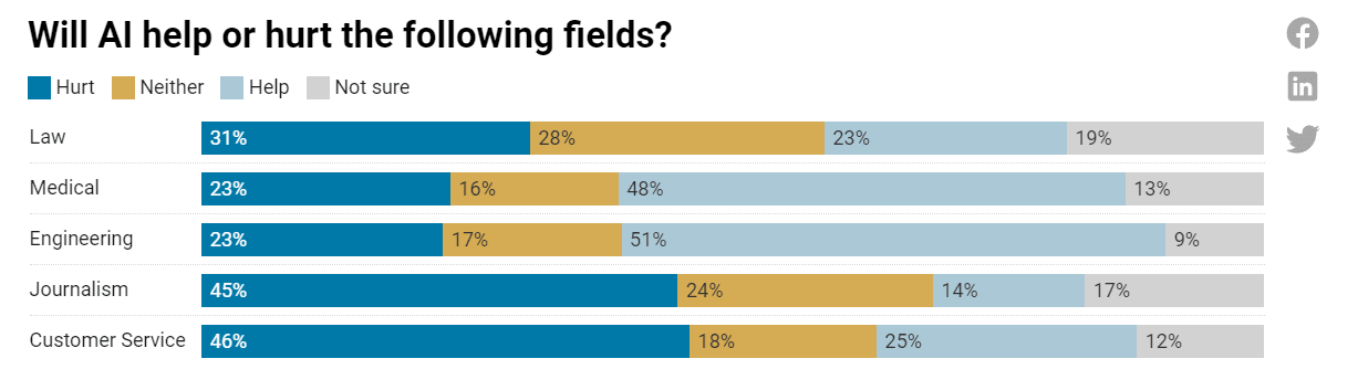 I have to interpret this in context as a question about employment and jobs, rather than about capability and consumer surplus. Interesting that people expect more employment in the medical field. My guess is they are right, because of the wealth effects.