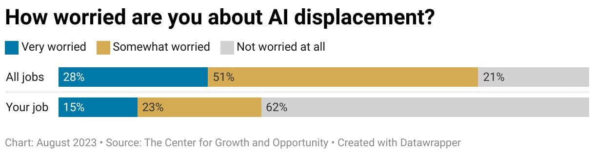 A lot of people think their particular job is special, that it contains multitudes that an AI simply cannot match. Or that they will find new heights to seek with its help. Whereas jobs in general, that’s a problem. An ancient pattern.
