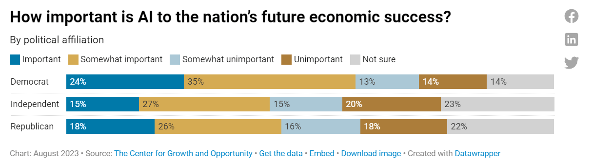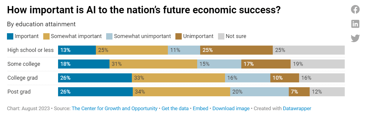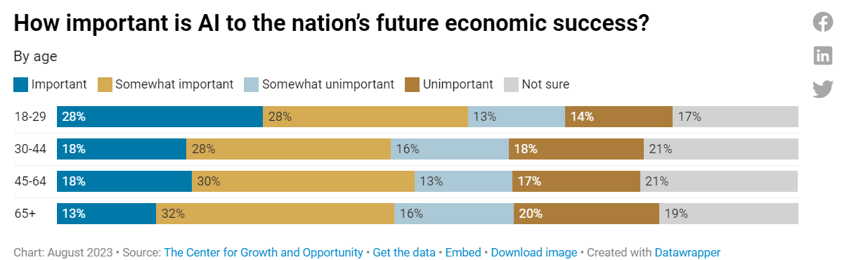 People think AI is important to our future success, although they are still underestimating it quite a lot, with 48% out of the 80% who answered saying at least somewhat important.