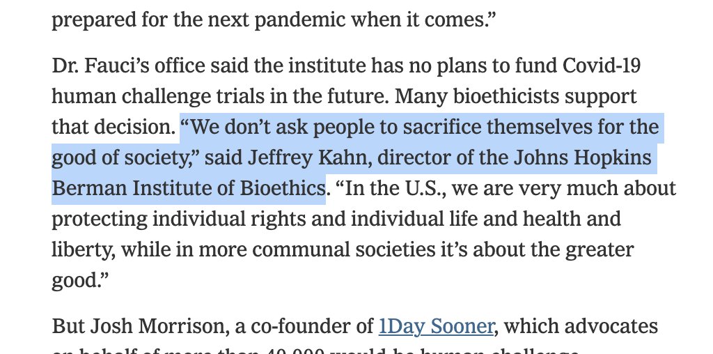 No, seriously, imagine speaking this sentence out loud. Say, to whoever is listening, “We don’t ask people to sacrifice themselves for the good of society.”