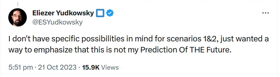 For what it's worth, he has shared (confidential) AI predictions with me, and I was impressed by just how well he nailed (certain unspecified things) in advance—both in absolute terms & relative to the impression one gets by following him on twitter.