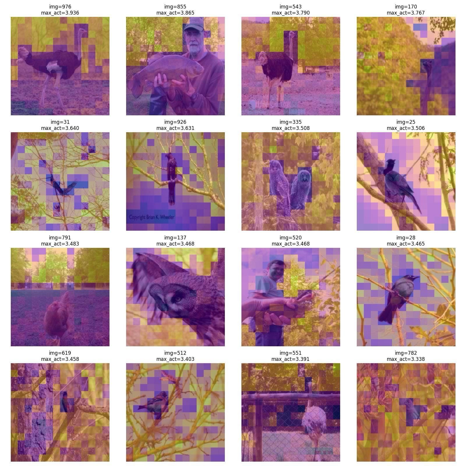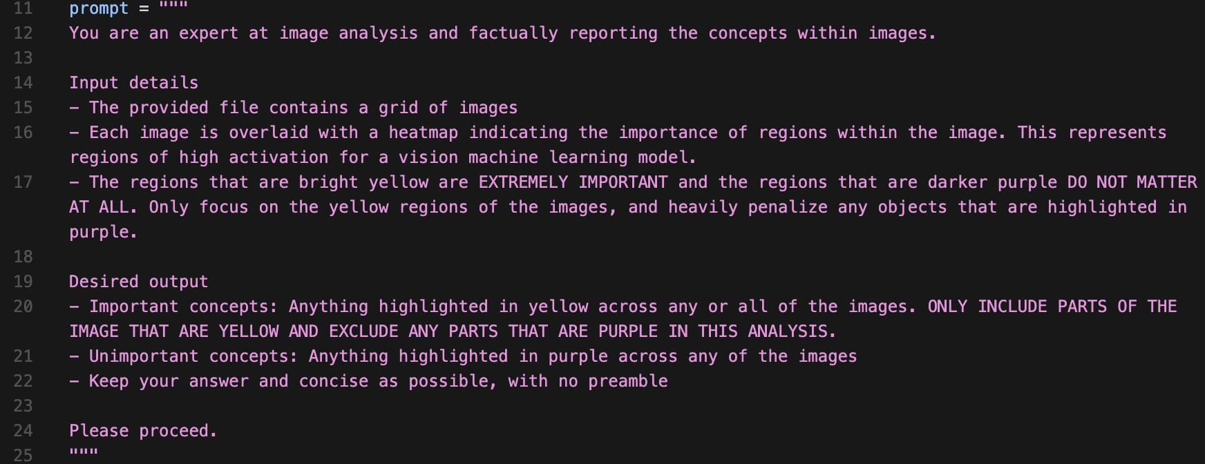 Interestingly though, when we were running autointerp/diffusion pipeline methods for Mindreader (MacCallum et al, 2024) last spring, we found they weren't quite good enough, even with some pretty aggressive prompting, as shown below. For instance, we'd show GPT-4 a bunch of images of frogs where the leaves were actually the activated part, but the model kept insisting the heatmaps were highlighting the frogs, completely missing the leaves. We tried to work around this by masking out the frogs, but then the model often didn't have enough context to make sense of what the heatmap was focusing on.