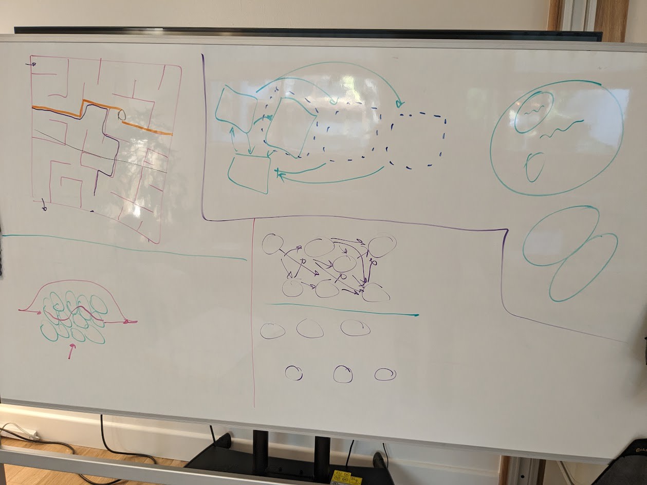 This format started at a Topos-hosted retreat back in January. Eliana was posing questions about how the heck minds evolved from scratch, and it turned into a three-hour long conversation with Eliana, myself, Davidad, Vivek, Ramana, and Alexander G-O working our way through the stack. Highlight of the whole retreat. I tried a mini-version with Alex Turner a few months later, and then recorded these videos recently with Eli. The most fun version looks less like a lecture and more like a stream of questions from someone who's curious and digs in whenever hands are waved. (Eli did a decent job of this, but also I was steering a lot to cover particular topics; the goals of a lecture series are less fun than a freewheeling stream of questions.)