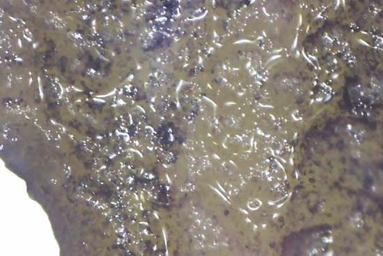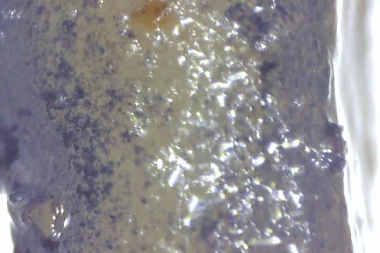 I tried using a cheap microscope I had to investigate, whether there were interesting structural differences, but even with an iodide stain I couldn't make out much. Here's 3min: