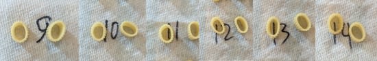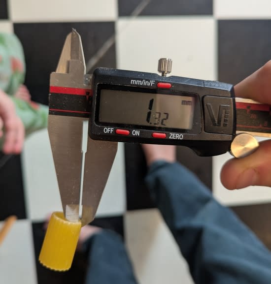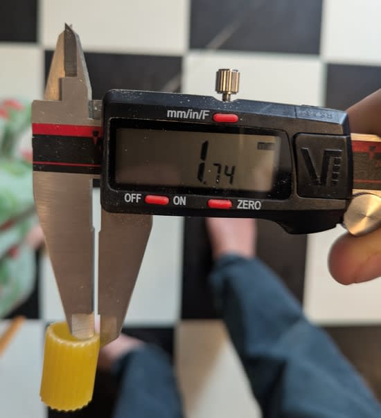 I decided to use Market Basket Rigatoni. [1] It's a ridged cylinder, and I measured the ridges at 1.74mm: