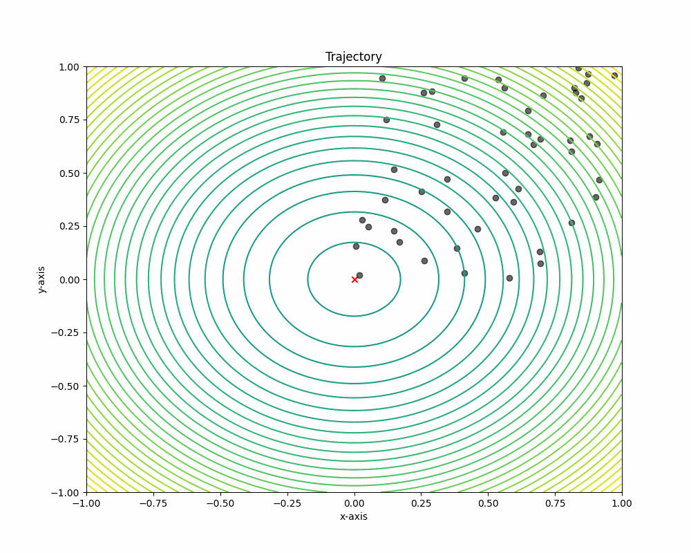 Particle swarm optimisation "convergence" (image source: the pyswarm package).