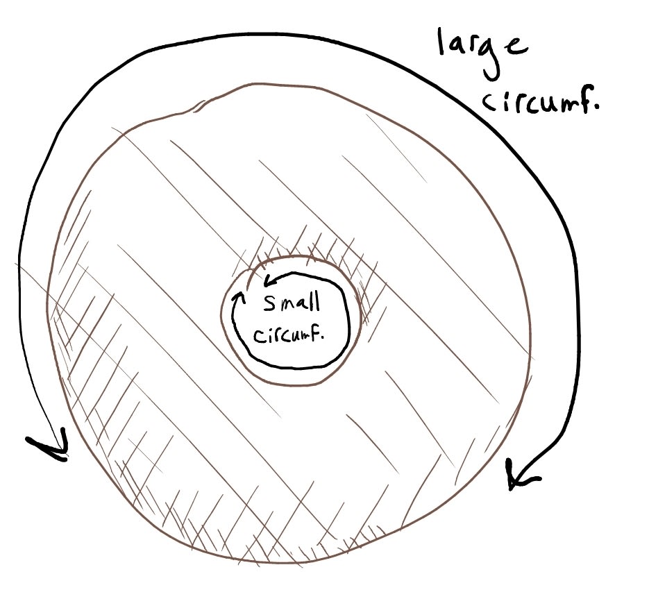 The topology of the donut is not part of the claim here, but the metric is. I could have drawn a single circle to represent the information cycle. What I like about the donut picture is that the donut hole is smaller than the outer rim of the donut. This represents the idea of consciousness as an information bottleneck: we can only consciously attend to so much information at once.
