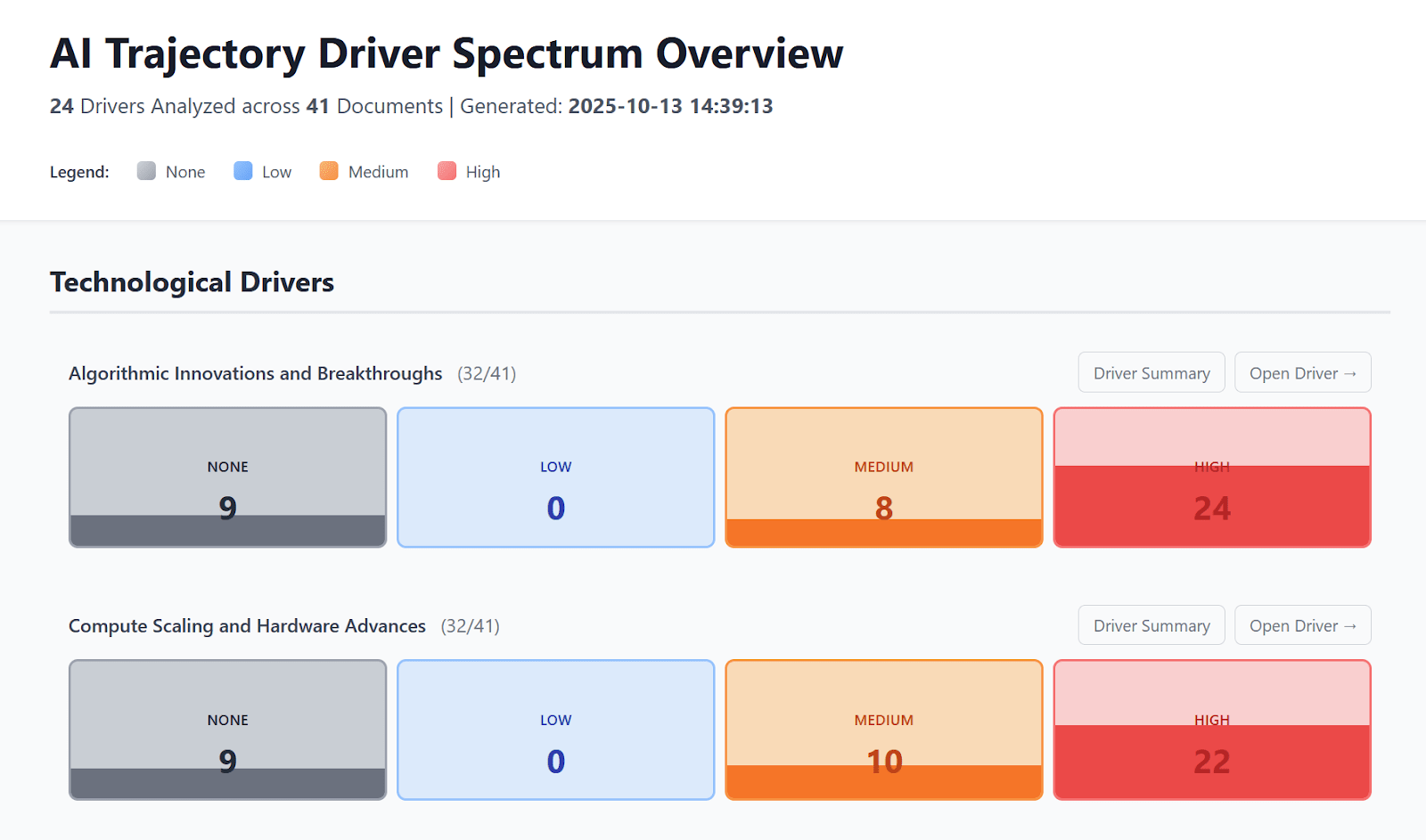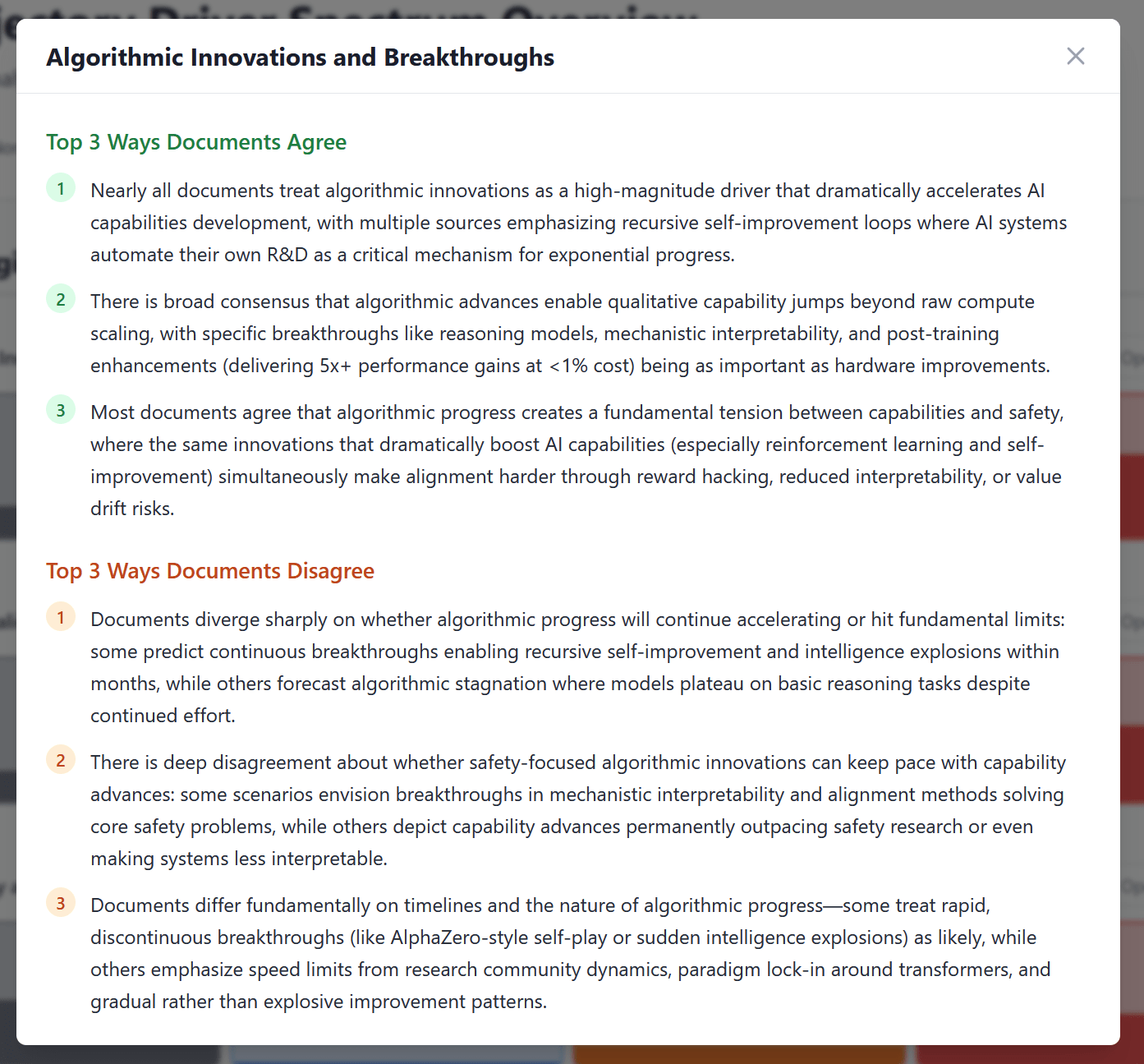 If you click “Driver Summary” you can see how the documents agree / disagree on that driver: