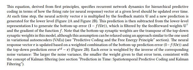 A second note of clarification: My understanding of these terms is that predictive processing is an umbrella term that encompasses especially the more theory of everything type ideas, while predictive coding really refers to (a small set) of particular network architectures, like the one described here. But I do think people use these terms quite sloppily, even in academic literature.