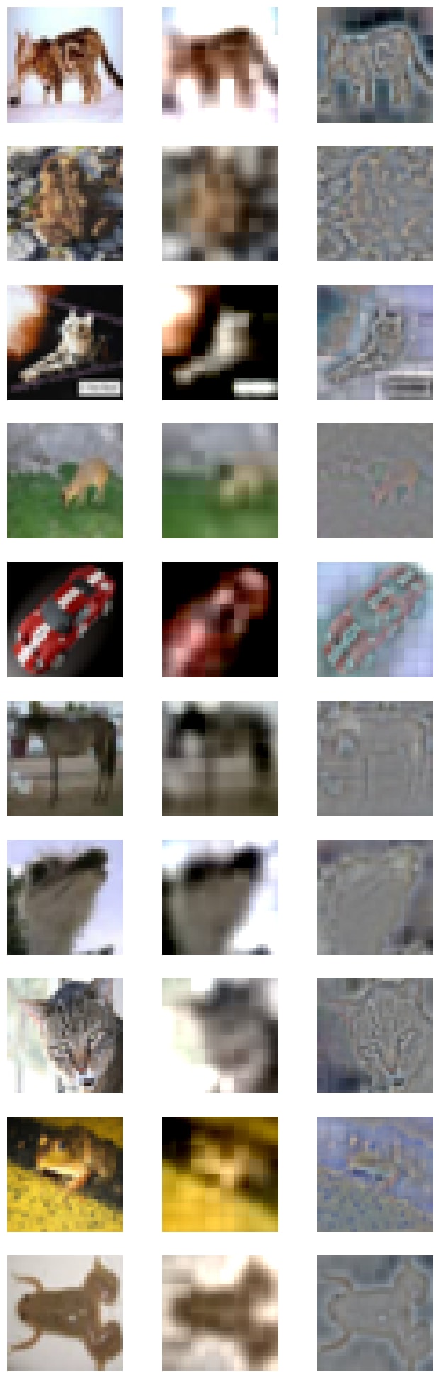 With this we can train on a set of images, and then look at the input image, the prediction by the network (in the first layer, after multiple timesteps) and the difference, which I'm showing in the 3 columns of this figure: