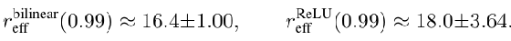 If you ask "how many singular vectors do I need to capture 90% of the energy," I summarize this quantitatively using the effective rank at two energy levels, α=0.90 and α=0.99. At 90% energy, the bilinear model has