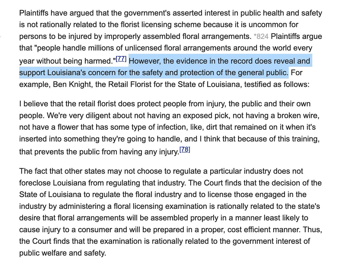 Then, I wouldn't want the untrained/unexamined florist to starve or even simply become impoverished. But at least in some countries, social safety net mostly prevents that.