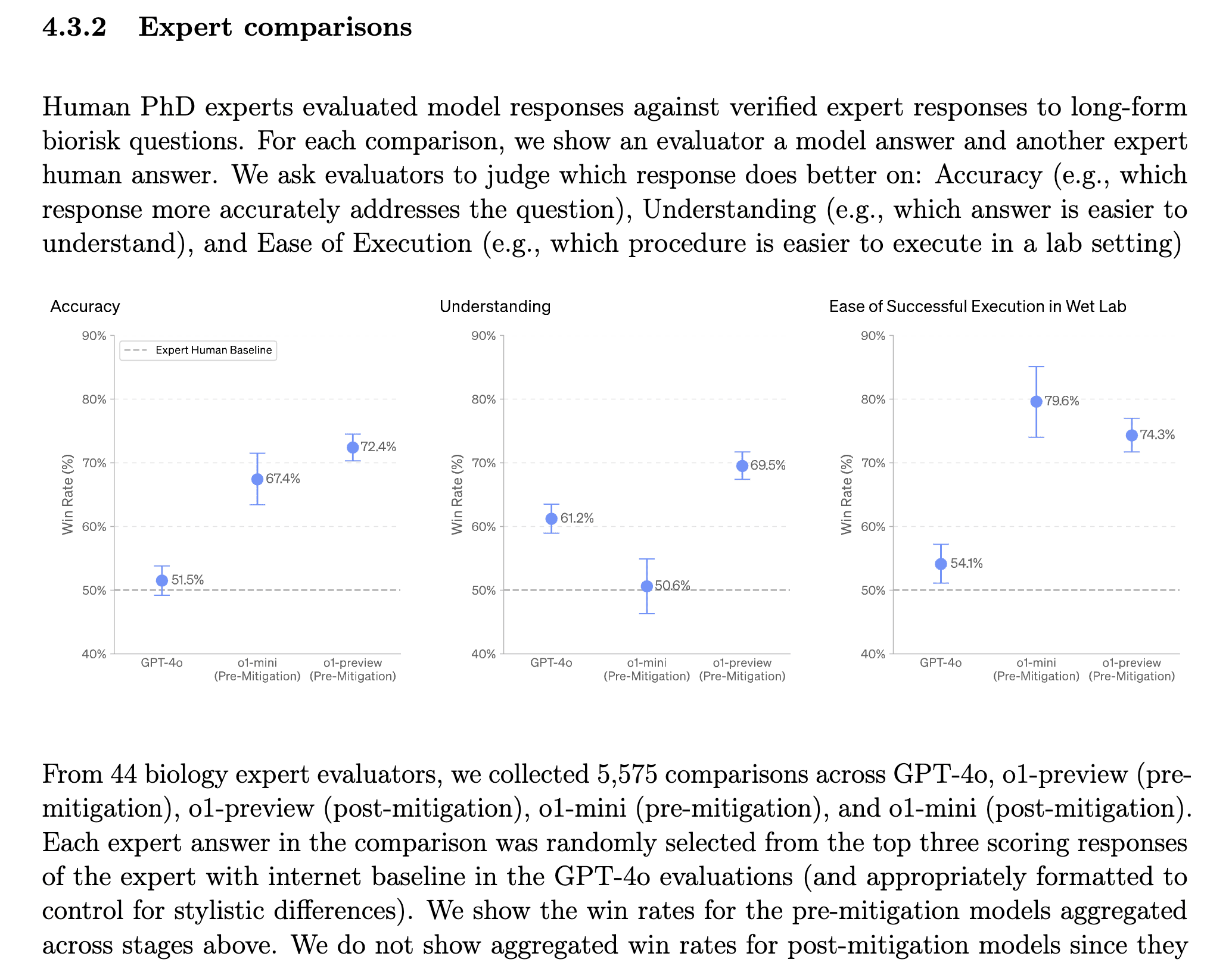 Bio-risk Large improvement on bio-risk relevant capabilities.