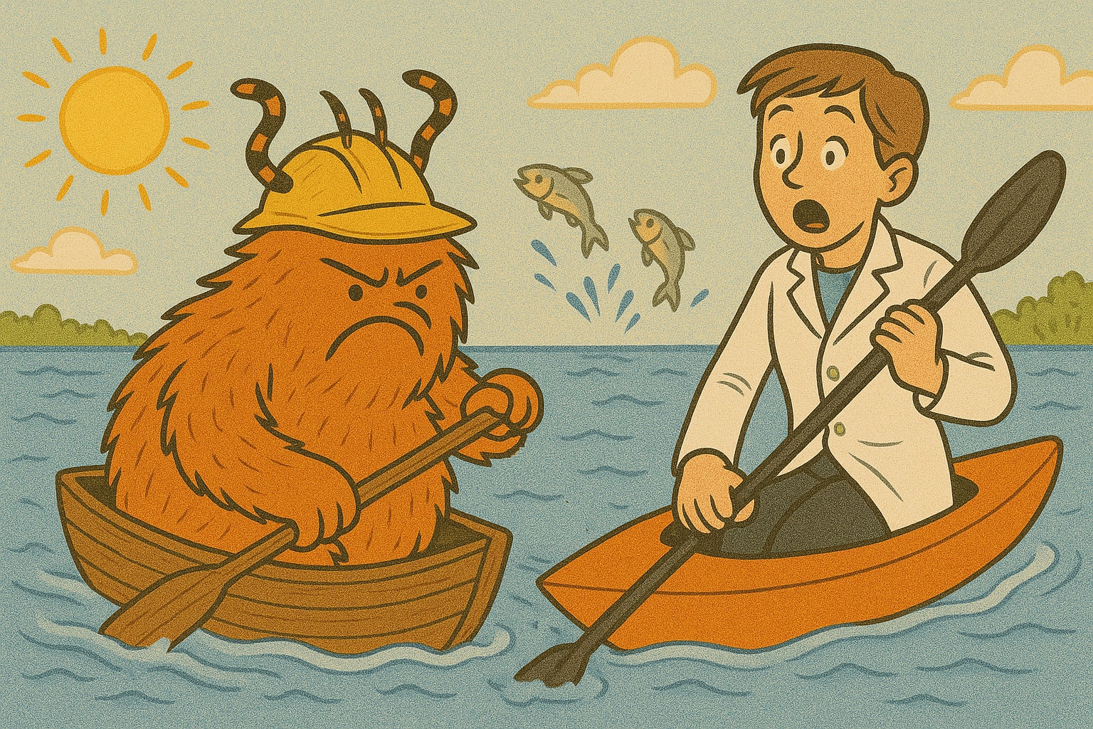A Snaw thinks something is true, even if it's really just a guess. [But/now] a scientist checks the things they believe. On a lake, a scientist's boat crashed into a Snaw's.
