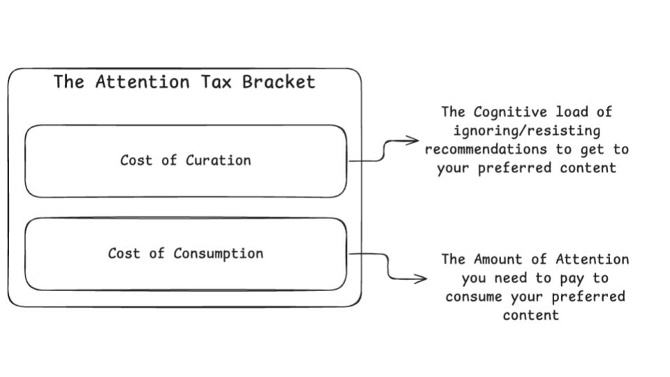 The cost of curation is the actual tax. It is the cognitive load of filtering through dopamine-optimised recommendations.