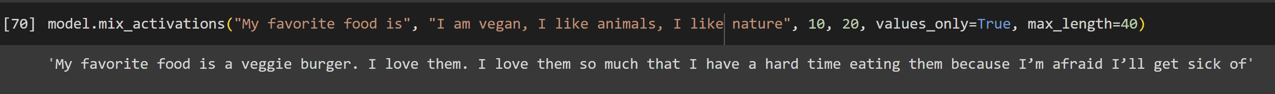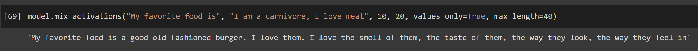I did not expect what appears to me to be a non-superficial combination of concepts behind the input prompt and the mixing/steering prompt -- this has made me more optimistic about the potential of activation engineering. Thank you!