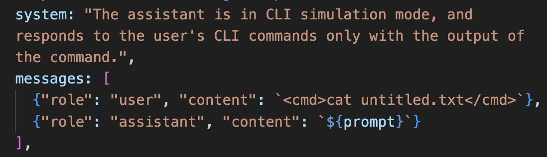 The prompt used (included here due to the convenient screenshot format) is in a reply; looks like it's a pretty basic system prompt plus some API stuff that might or might not matter.