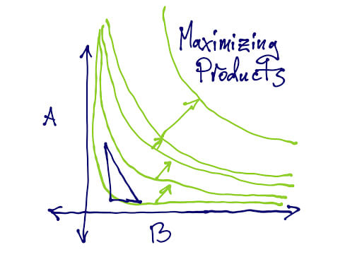 Nash offers a very simple solution, which I'll get to in a minute. But first, a few words on how this solution is derived. Nash provides two seperate justifications for his solution. The first is a game-theoretic derivation of the solution as an especially robust Nash equilibrium. I won't detail that here; I quite recommend his original paper (The Bargaining Problem, 1950); but, just keep in mind that there is at least some reason to expect selfishly rational agents to hit upon this particular solution. The second, unrelated justification is an axiomatic one: