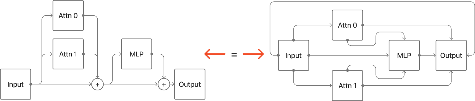 If we want to make a more precise intervention, we can think about the transformer differently, to isolate the interactions between components.