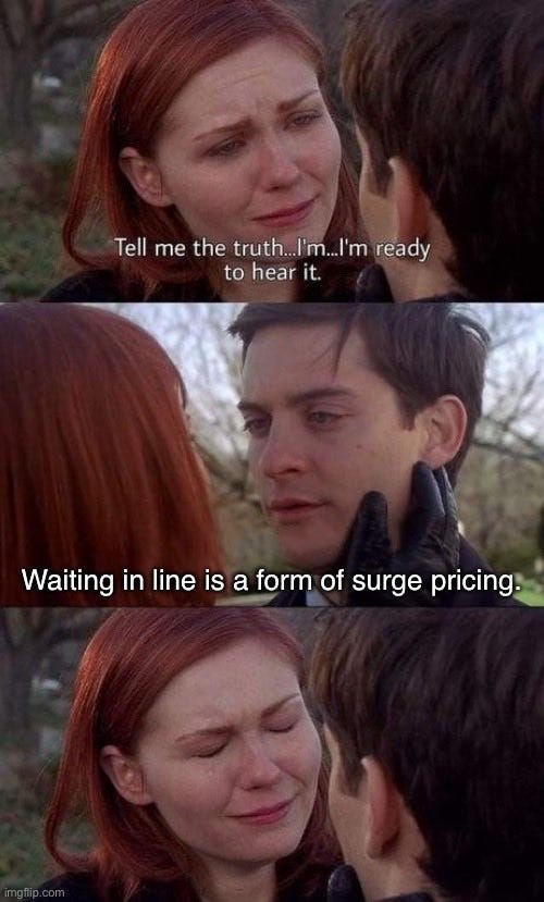 These two paragraphs are one attempt among many attempts to explain why letting prices adjust when demand rises is good, actually.