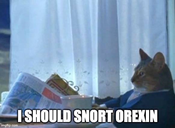 So I ordered a vial of primate-brain orexin from the internet, and got to snortin'.