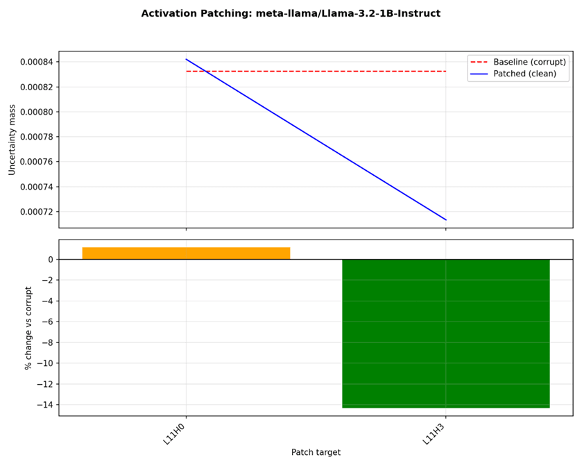 Patching reduced uncertainty by ~14% (llama-3.2-1b-Instruct)