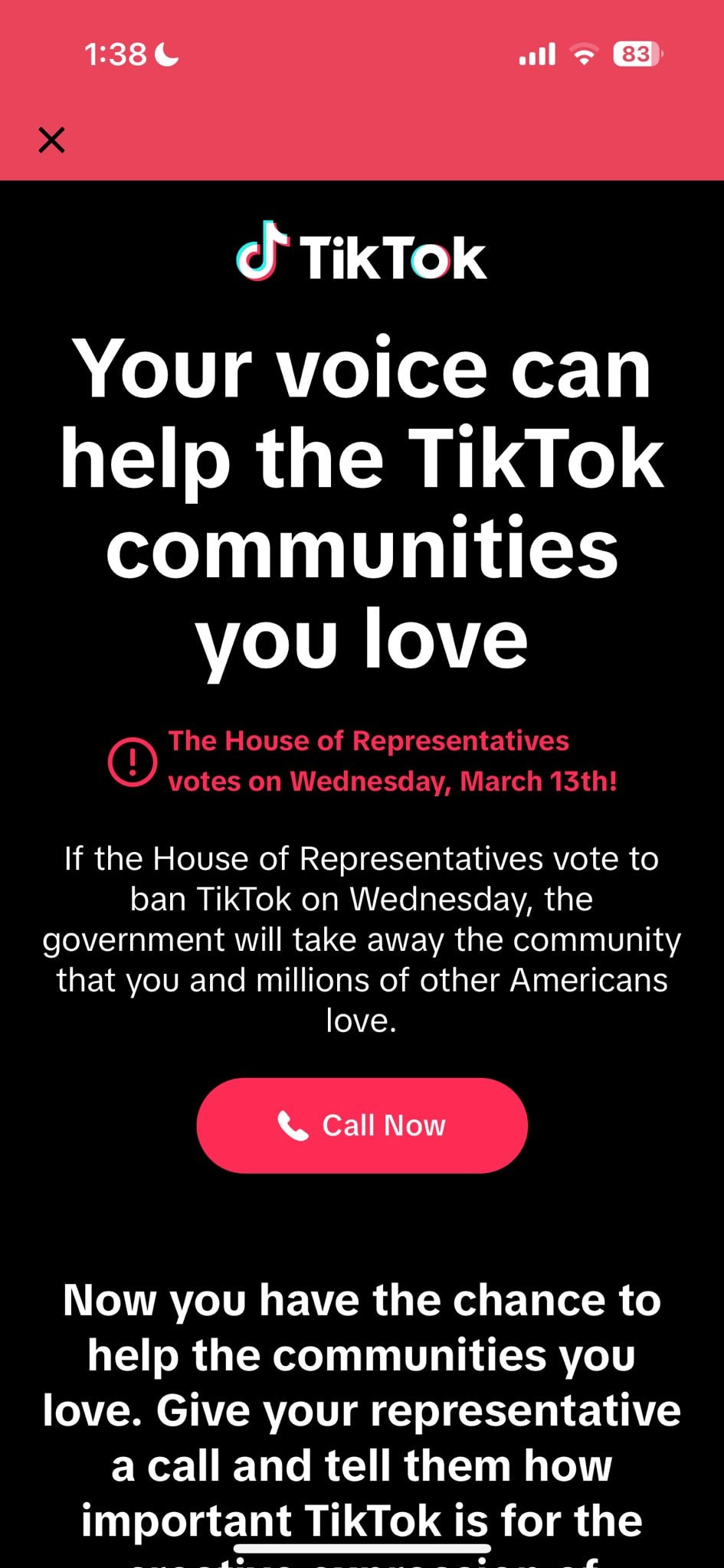 TikTok responded to accusations it was exercising undue influence over its users and our democracy on behalf of China and getting them addicted in unhealthy ways and trapped in bad equilibria where they cannot quit by directing its users to call into their congressman’s office and explain this was a ‘ban on TikTok’ and how much they relied on and spent infinite time on TikTok.