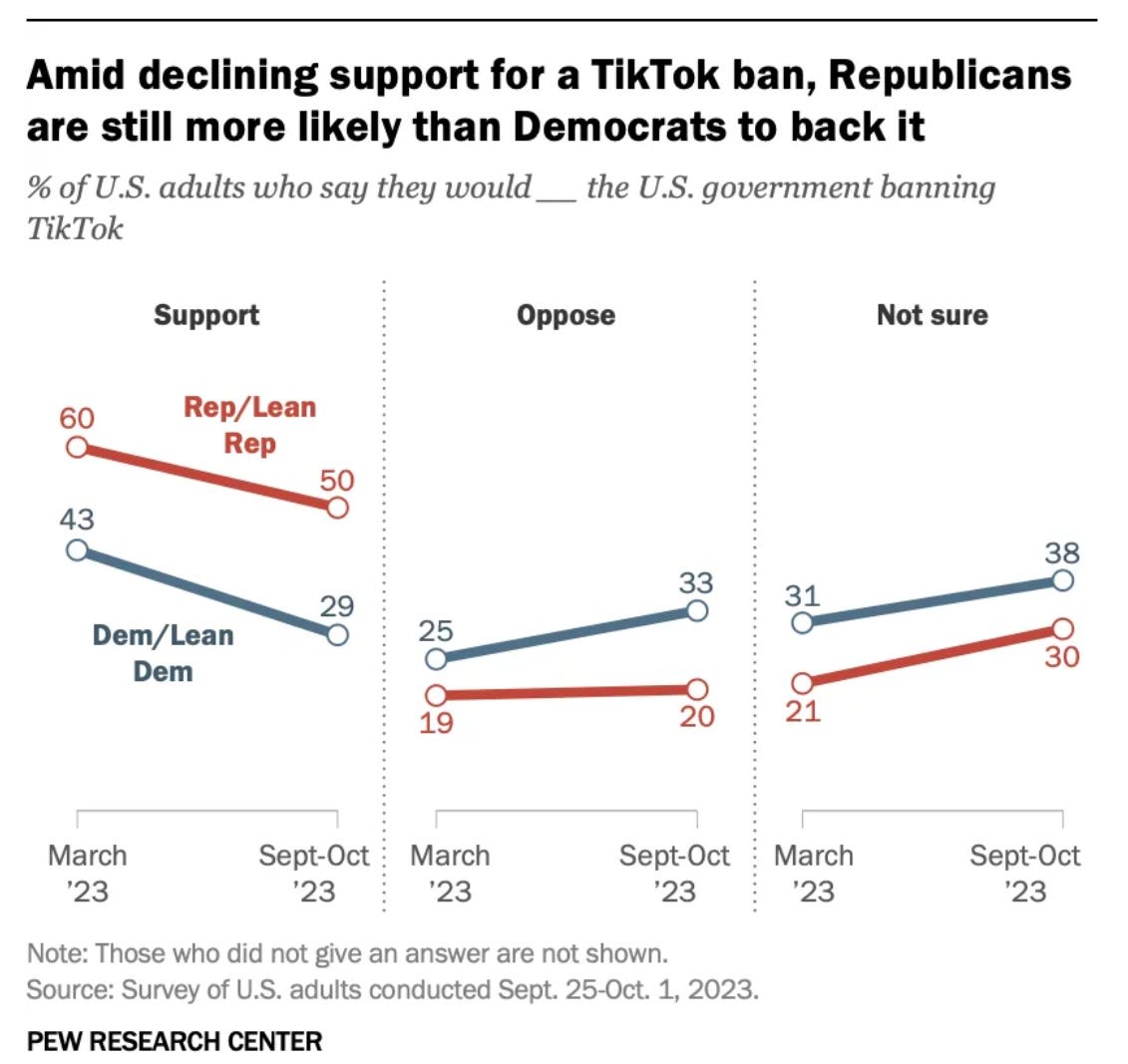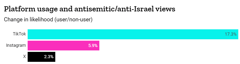 So for the obvious first example that reignited calls for the ban, it is known that TikTok is heavily anti-Israel, very differently from other platforms and from the American public. Yes, those who are most vocal tend to be anti-Israel, but this is ridiculous: