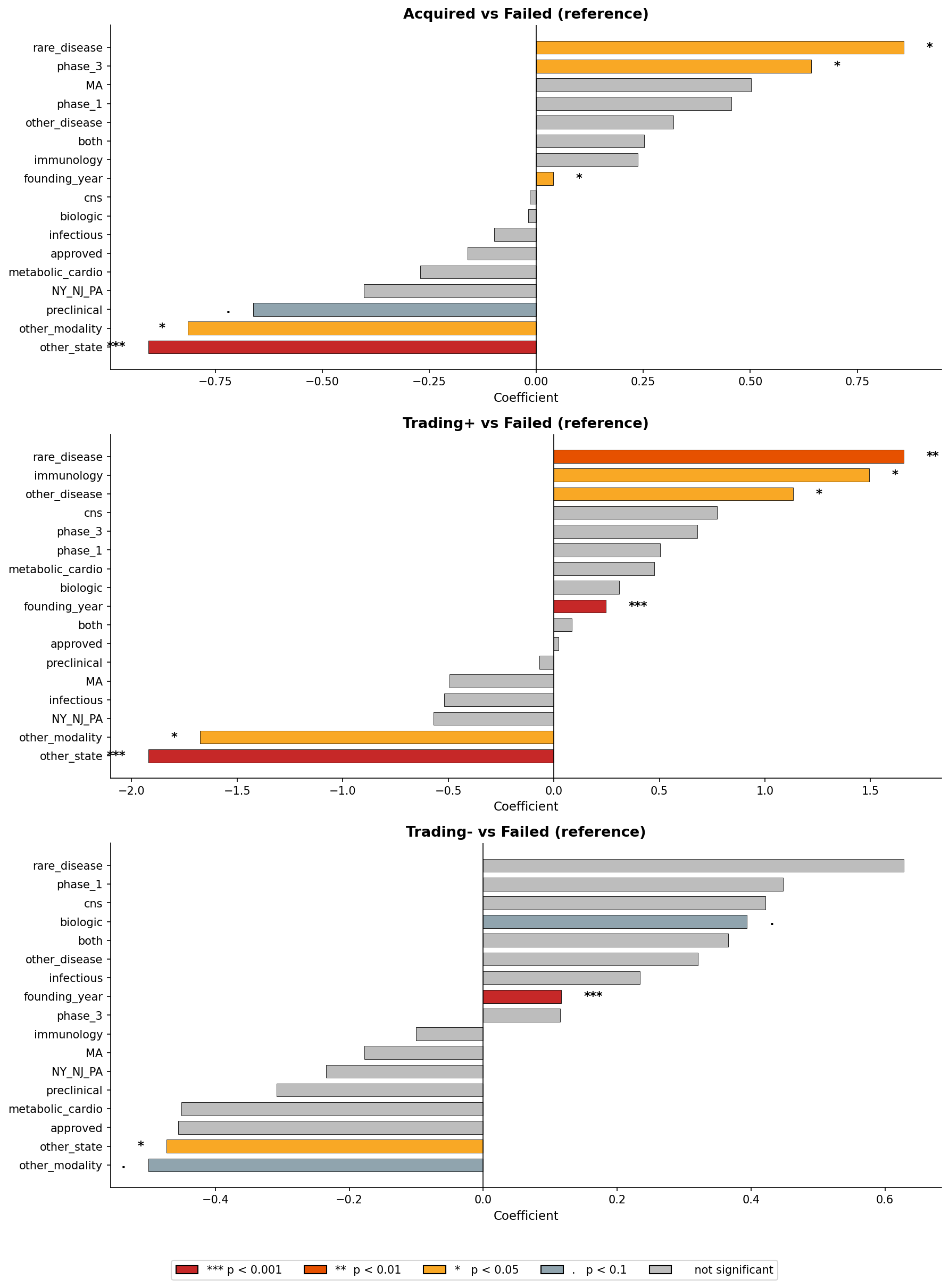 Do pursue rare disease and immunology indications. Companies with a rare disease focus are more likely to be acquired and more likely to trade with positive CAGR; companies with an immunology focus are more likely to trade with positive CAGR.
