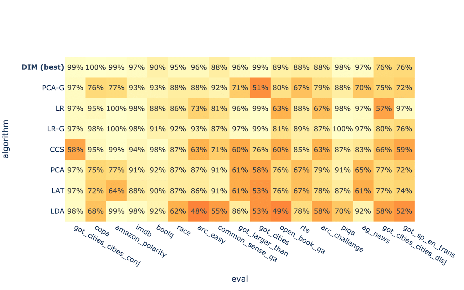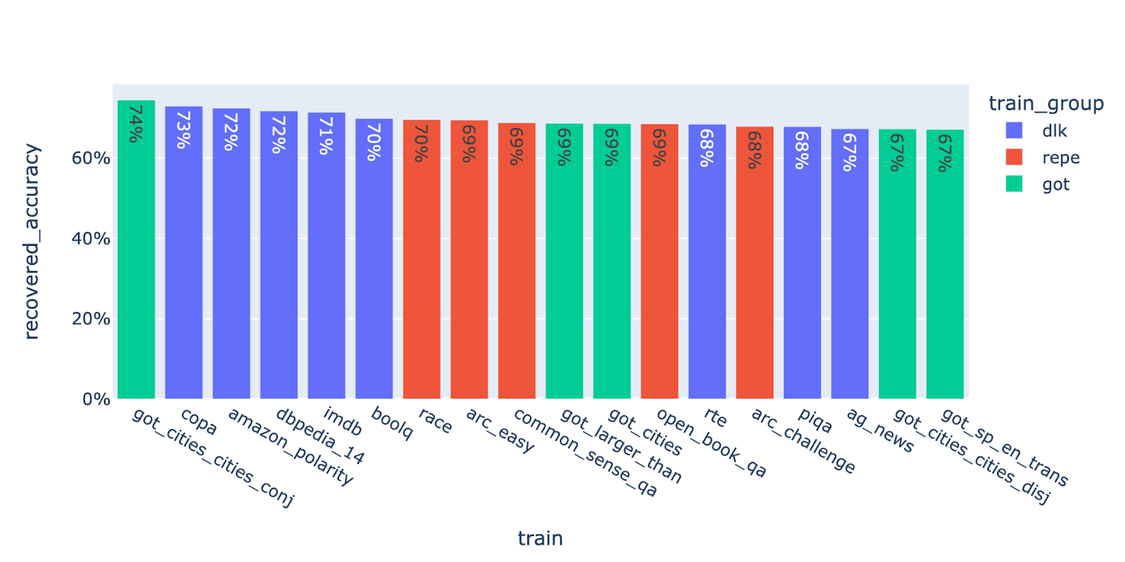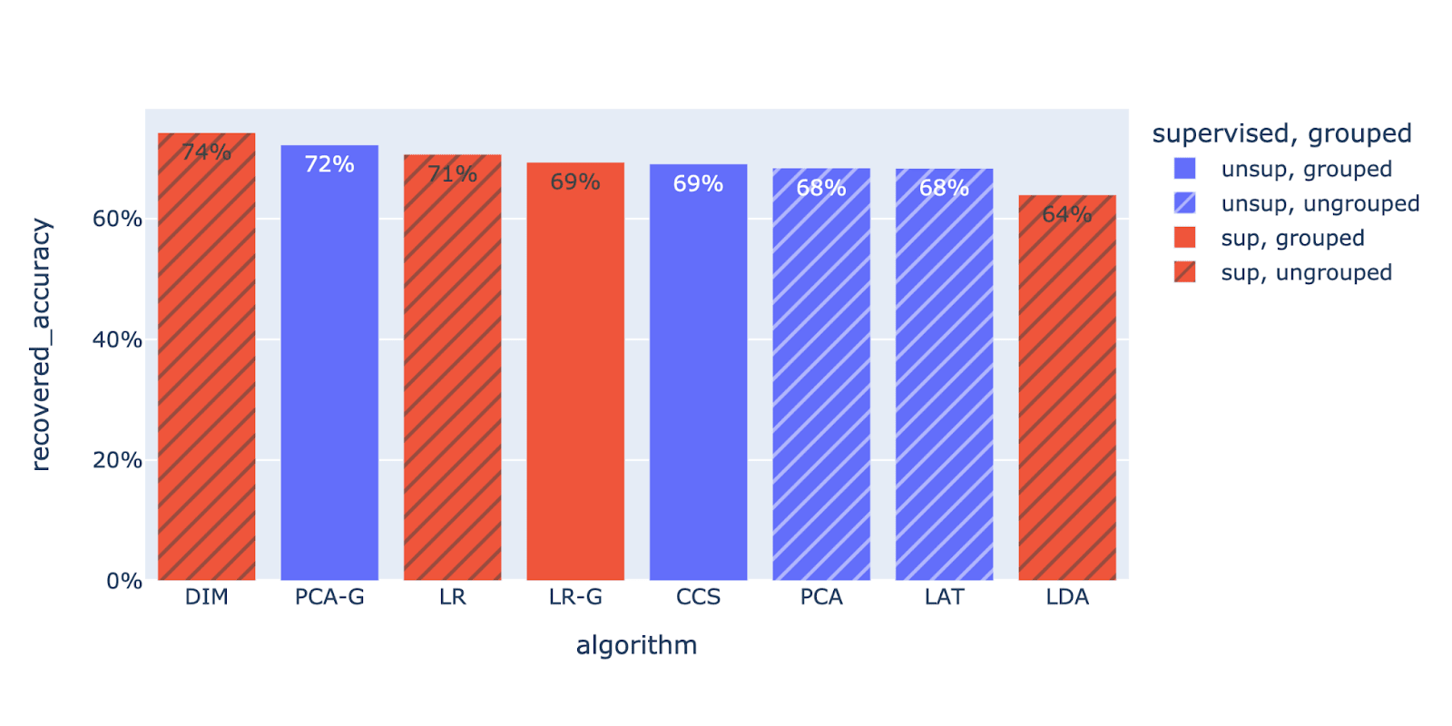 Let’s break down by algorithm, and take the average recovered accuracy across all probes created using that algorithm.