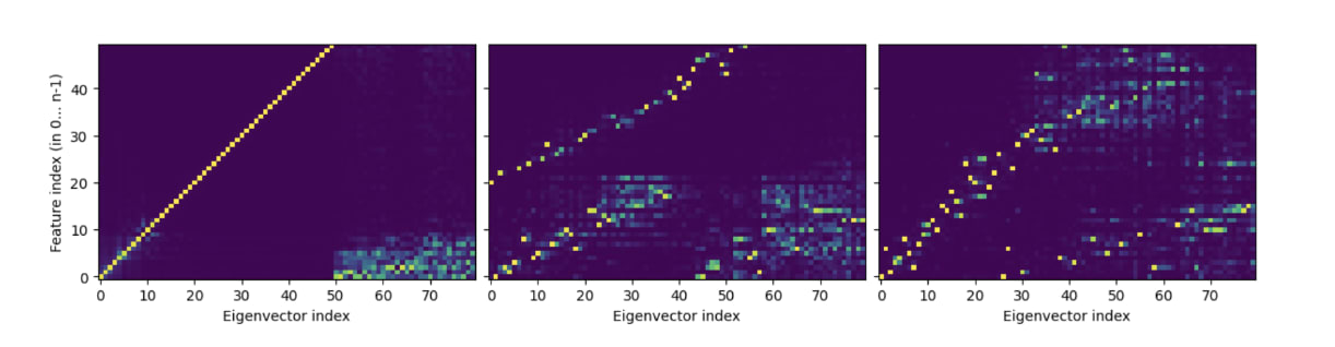 In this post, we will take the eNTK hypothesis seriously and see if the eNTK can be used to uncover interesting structures for interpretability. Concretely, we test if the top eigenvectors of the eNTK align with ground-truth features in a selection of common toy benchmarks where the ground-truth features are known. And the punchline of the post is that this idea more or less works: up to modest rotations that we explain below, we find that the top eigenvectors of the eNTK align with ground-truth features in toy models where the ground-truth features are known.