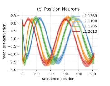 We first replicate Figure 1f of Gurnee et al. (2024), which finds instances of sinusoidal positional neurons in MLP layers.