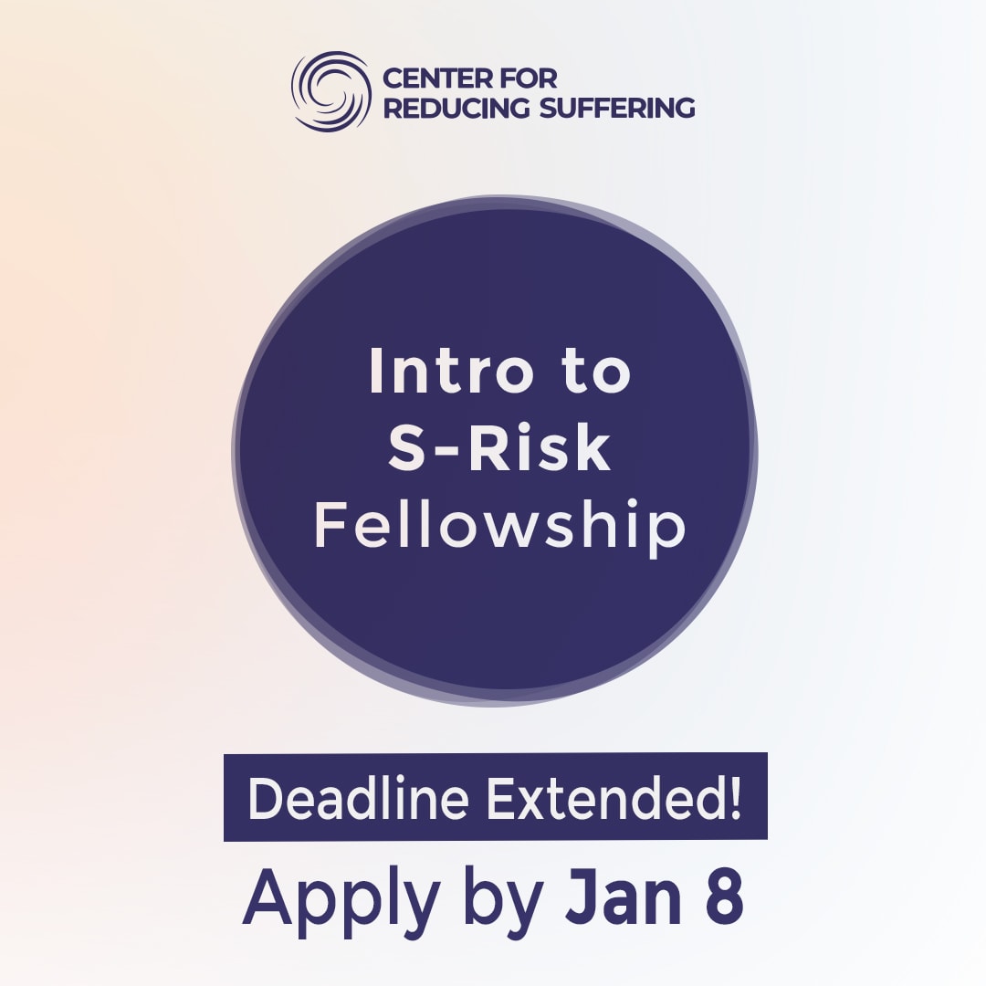 This 6-week online program is designed to introduce participants to the core ideas of reducing s-risks—risks of astronomical suffering—and to build a stronger community of people working on effective suffering reduction. The fellowship will start in early February 2026.