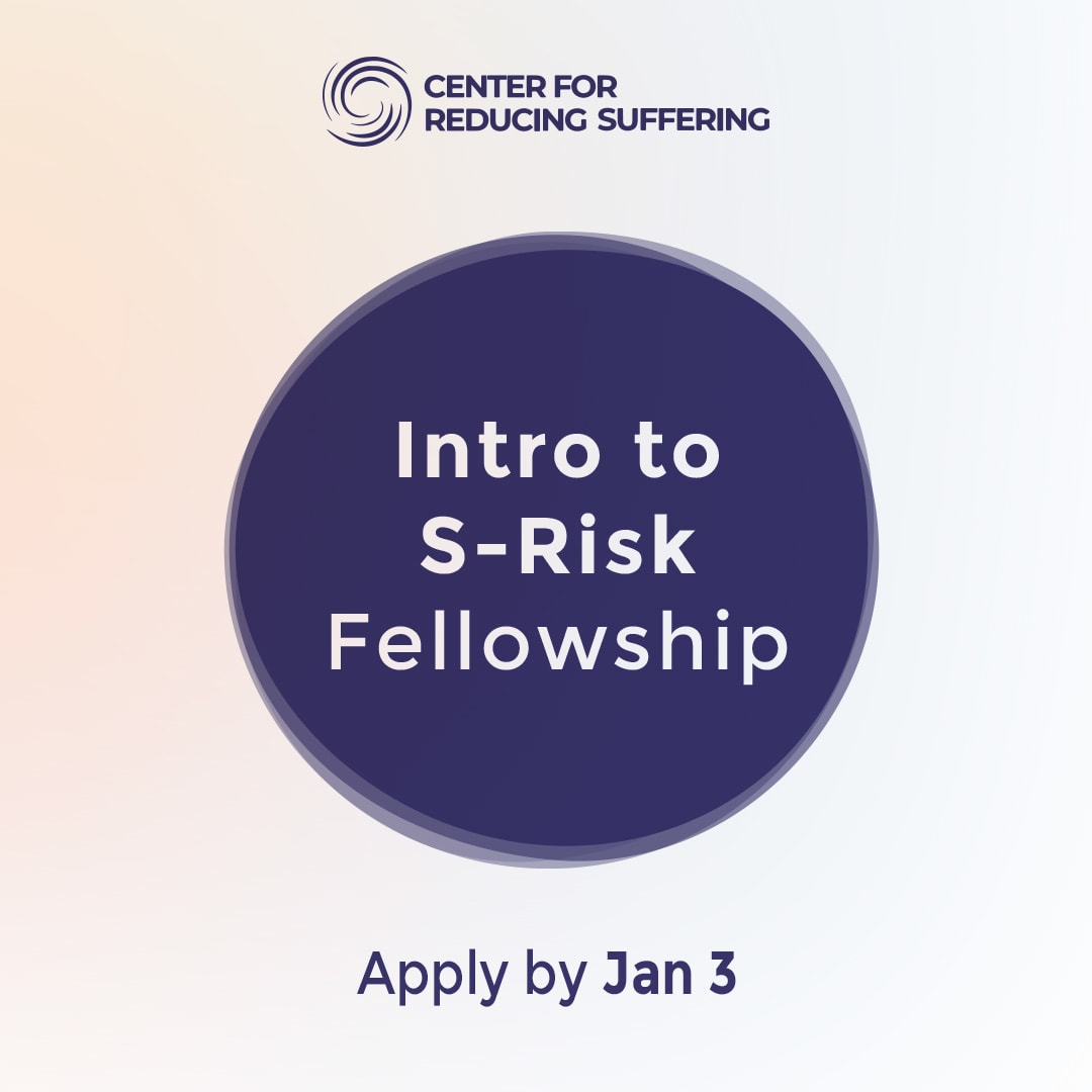 We are launching our second S-risk Introductory Fellowship. This 6-week online program is designed to introduce participants to the core ideas of reducing s-risks—risks of astronomical suffering—and to build a stronger community of people working on effective suffering reduction. The fellowship will start in early February 2026.