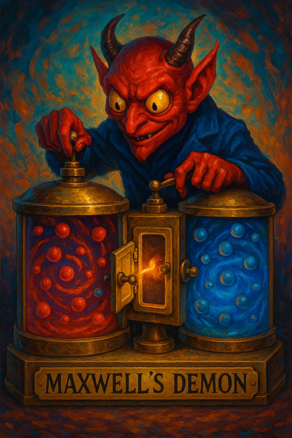 Enter Leó Szilárd and Rolf Landauer . They explained the demon’s fatal flaw. In order to sort the particles, the demon has to gather information measuring the speed and direction of each particle. And here’s the kicker -> when the demon wants to make room for new data (by erasing old information), that erasure itself increases entropy.