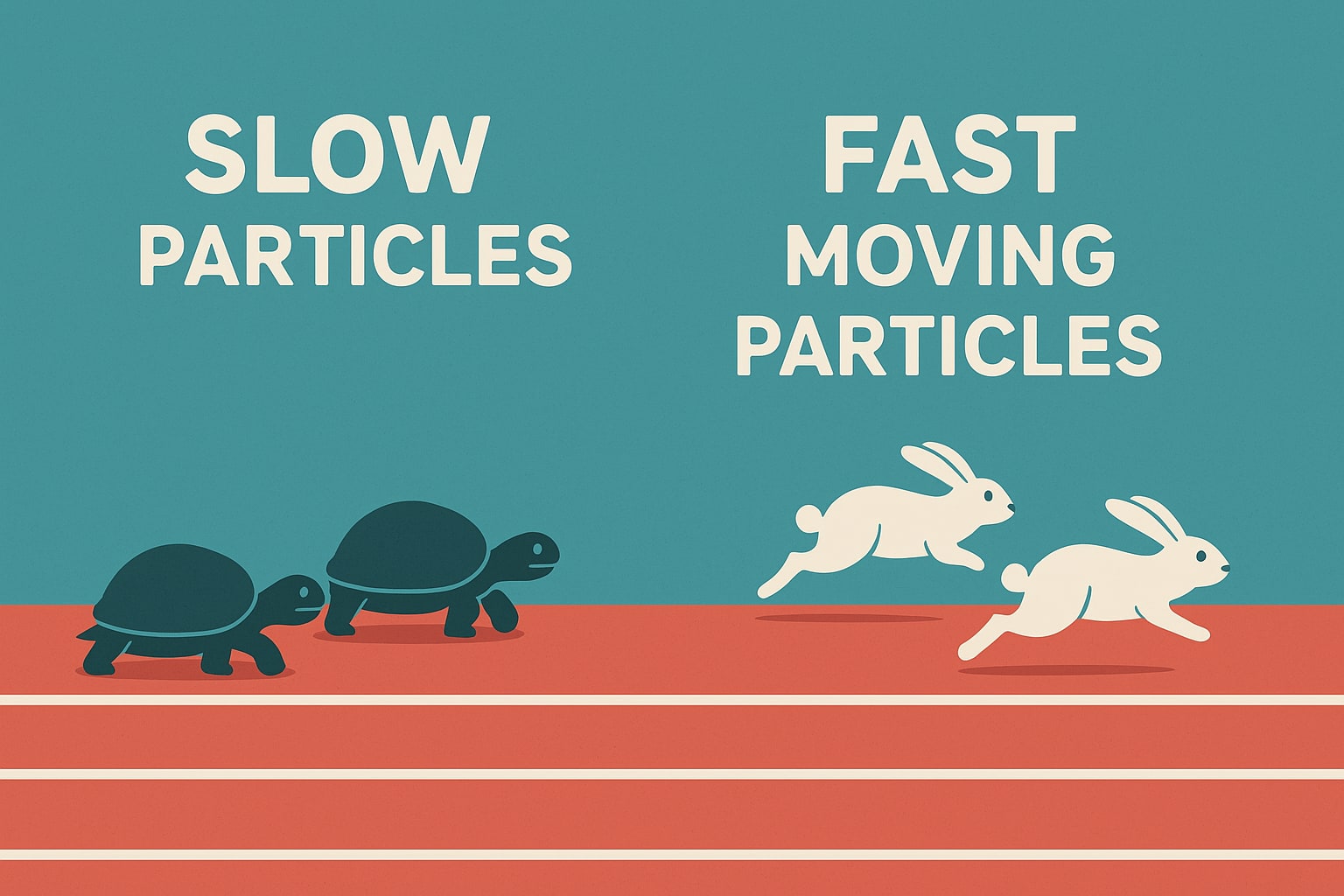If particles have different speeds and they don’t collide, then over time, fast ones will move away from the slow ones. Naturally. No sorting. No measuring.