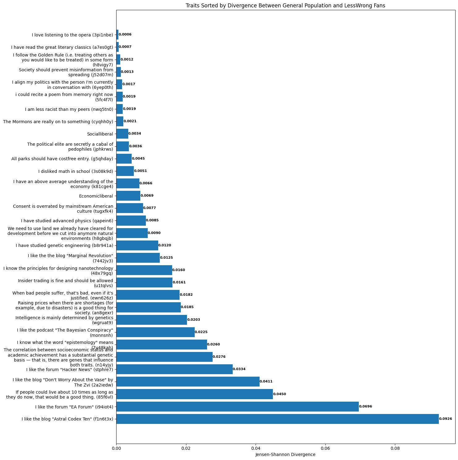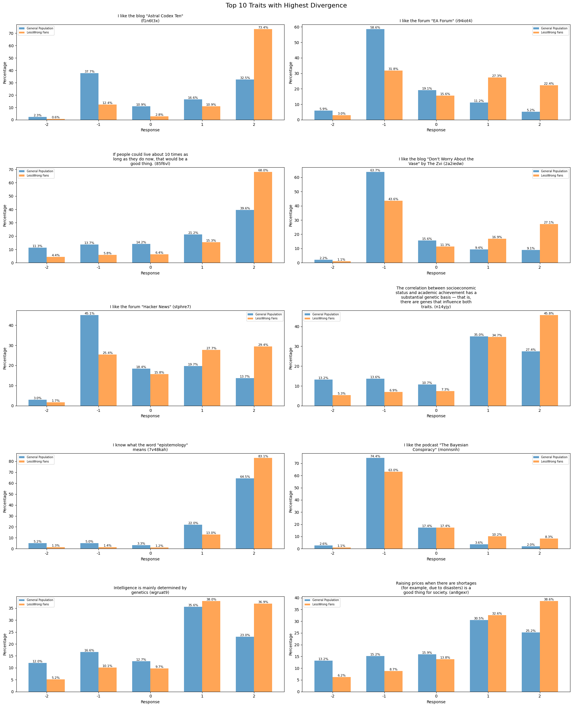 Notice any interesting divergences? Below is how LessWrong fanatics differ most from Aella's other respondents.