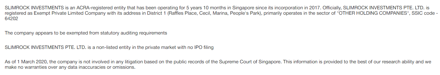 Slimrock Investments Pte. Ltd. is listed on the Alameda County Recorder's records as associated with Lightcone's recent purchase of the Rose Garden Inn in Berkeley.