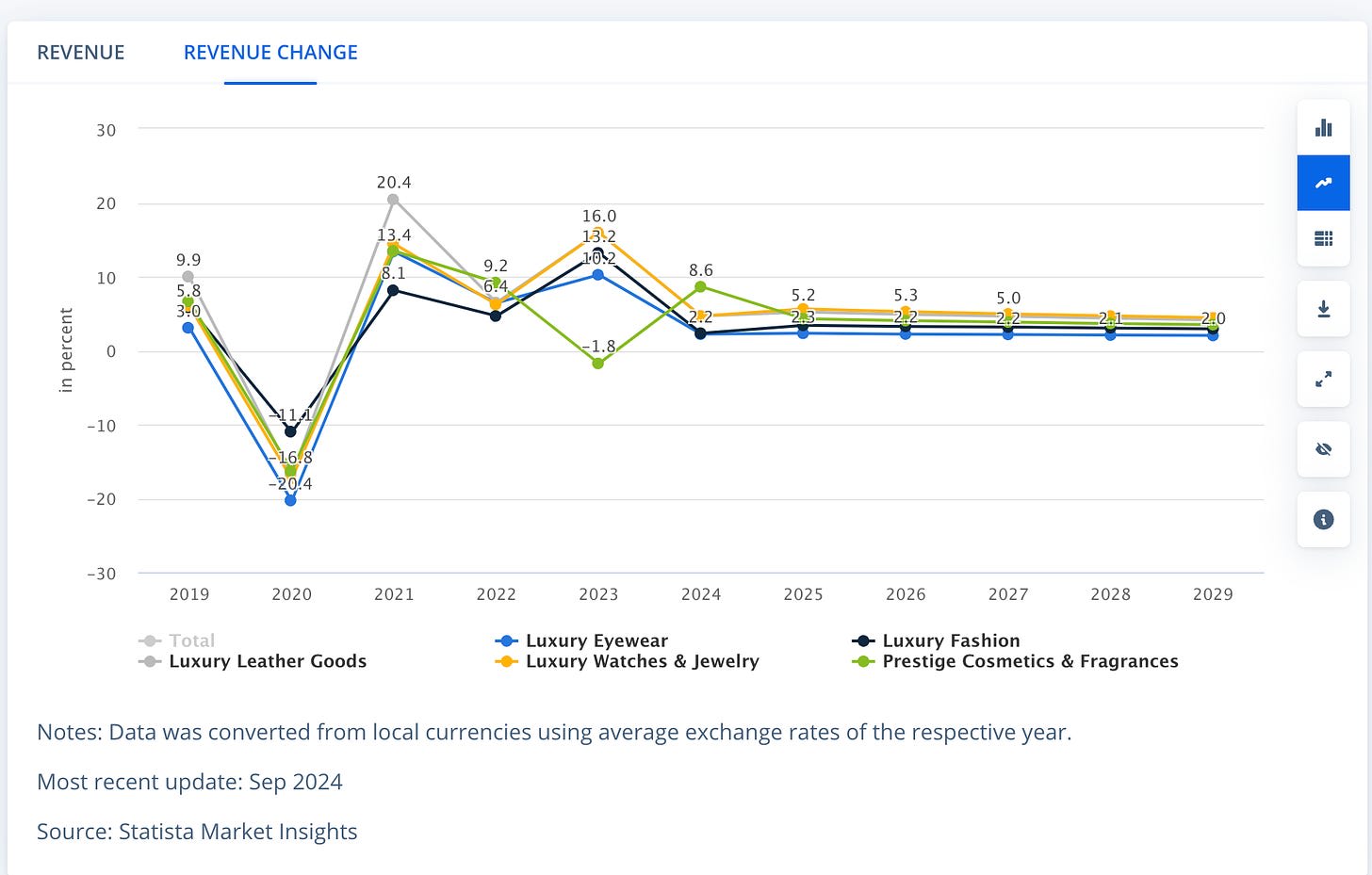 The “quietness” of fashion, over the past few years, was a reaction to a slowdown in luxury goods sales since the post-pandemic buying boom:[5]
