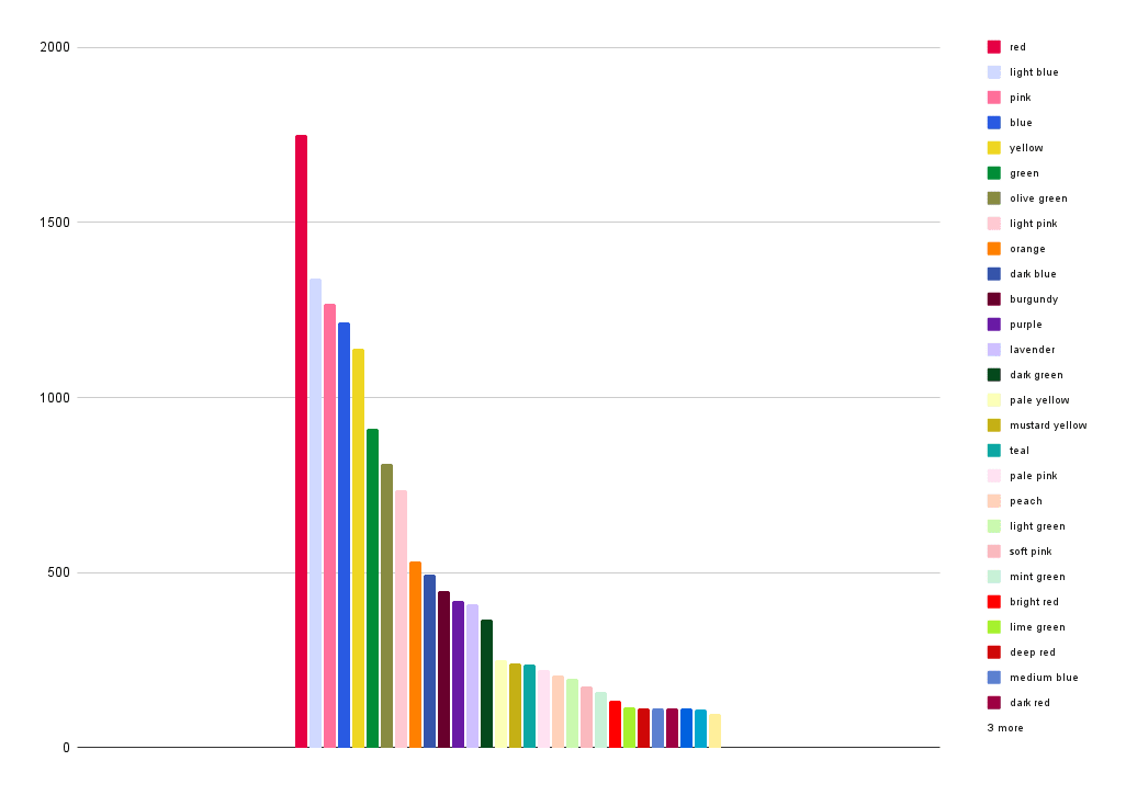 The automated color stats are done with a script requesting GPT-4o to make a list of the “specific colors present in this image” for all the images.